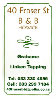 Linken & Grahame Cell: 083 299 7184 Email: 40fraserstreet@gmail.com